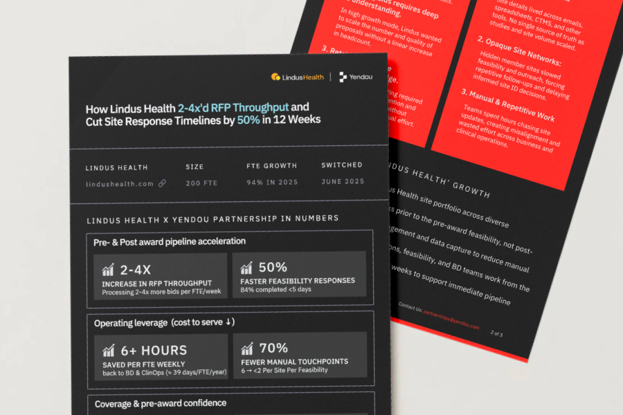 "At Lindus Health, we've seen that when sites feel valued as strategic partners, everything changes—trust deepens, loyalty strengthens, and response times accelerate, Partnering with Yendou helps make that possible."